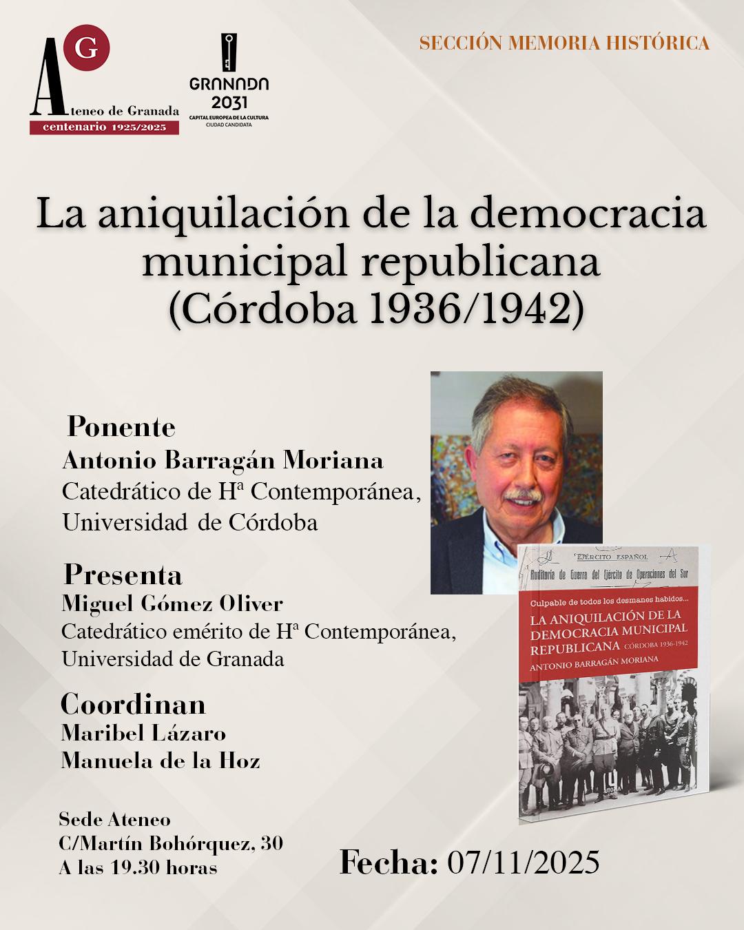 📚 Sección Memoria Histórica | Conferencia 🗓️ El viernes 7 de noviembre de 2025 a las 19:30 h, el Ateneo de Granada acoge la presentación del libro: 👉 La aniquilación […]