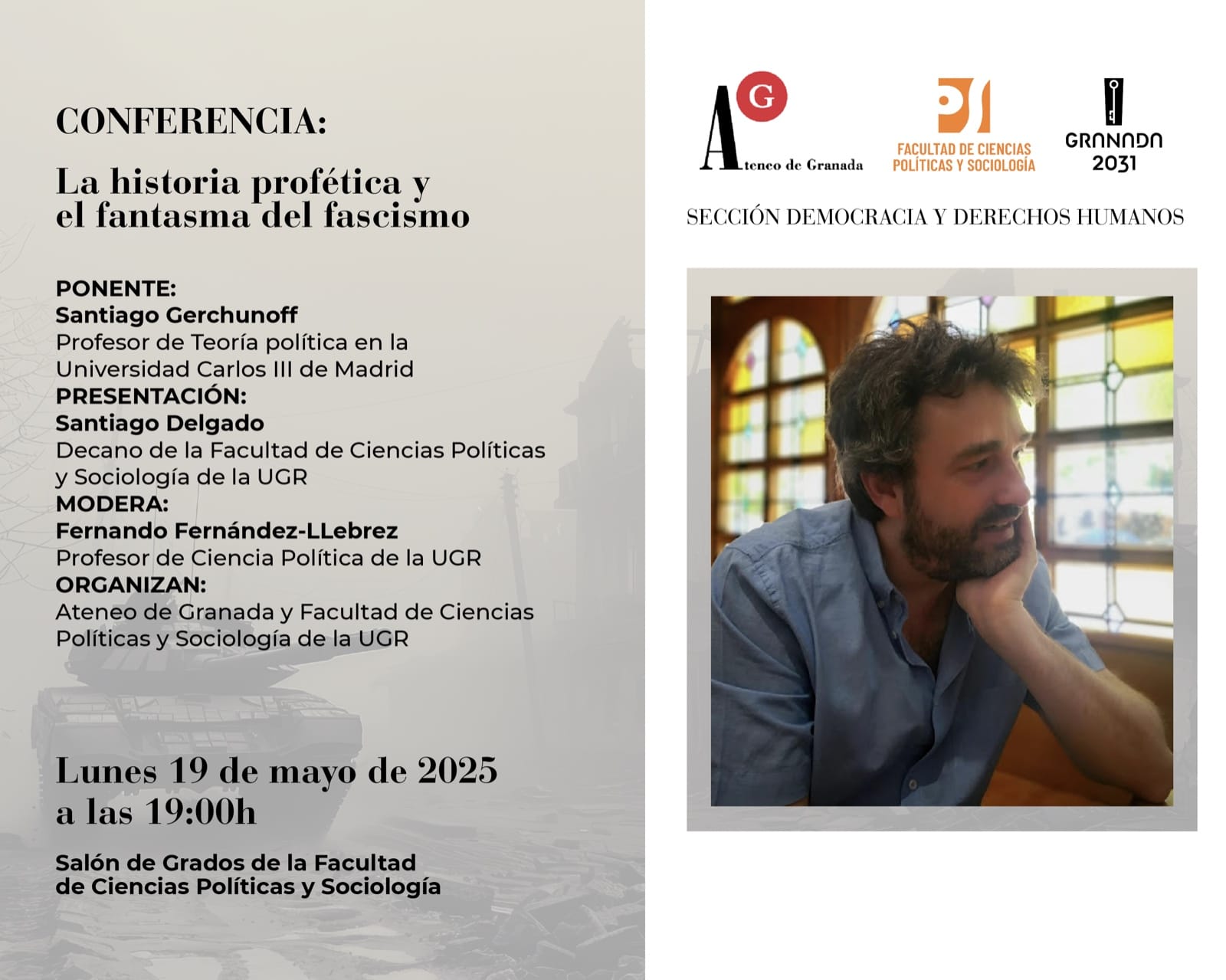 📚 Conferencia | La historia profética y el fantasma del fascismo El Ateneo de Granada y la Facultad de Ciencias Políticas y Sociología de la UGR abren un espacio de reflexión crítica sobre los discursos proféticos en la historia y el regreso de los lenguajes autoritarios en el presente. 📅 Lunes, 19 de mayo de […]