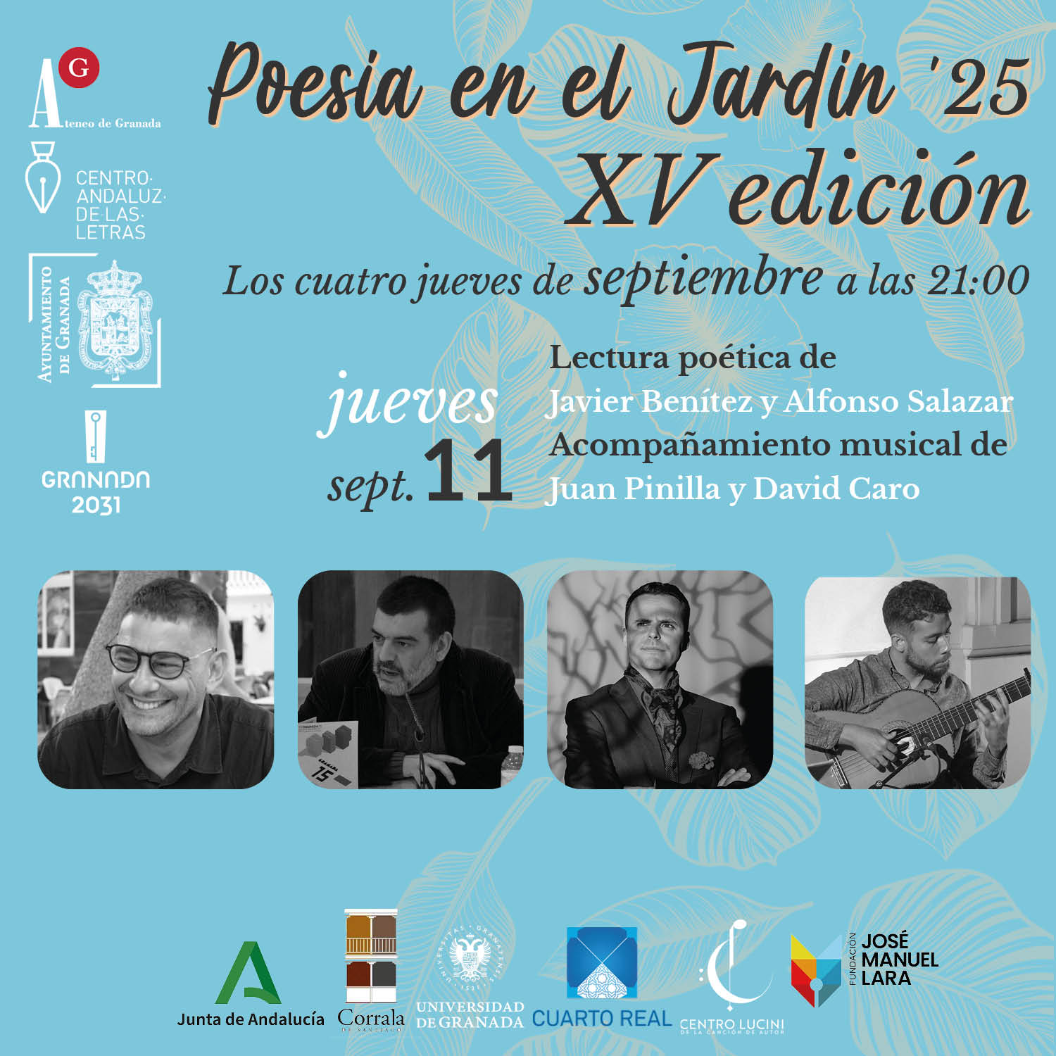 đżâš PoesĂa en el JardĂn â25 | XV ediciĂłnđ Jueves 11 de septiembre, 21:00 hđ Cuarto Real de Santo Domingo ContinĂșa el ciclo con una velada que uniĂł palabra y mĂșsica con gran fuerza expresiva. đ La lectura poĂ©tica corriĂł a cargo de Javier BenĂtez y Alfonso Salazar, dos voces imprescindibles de la literatura granadina. […]