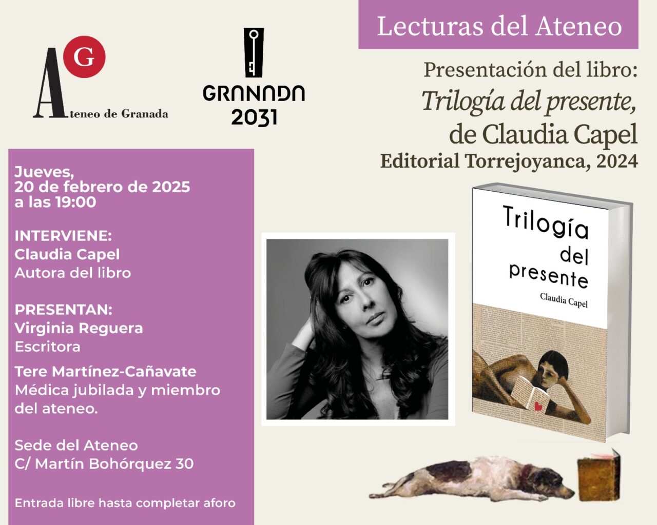 El tiempo se enreda en las páginas de Trilogía del presente, la nueva obra de Claudia Capel. Una invitación a reflexionar sobre lo que somos, lo que fuimos y lo que podríamos ser. Acompañada por Virginia Reguera y Tere Martínez-Cañavate, la autora nos guiará por los rincones de su narrativa.