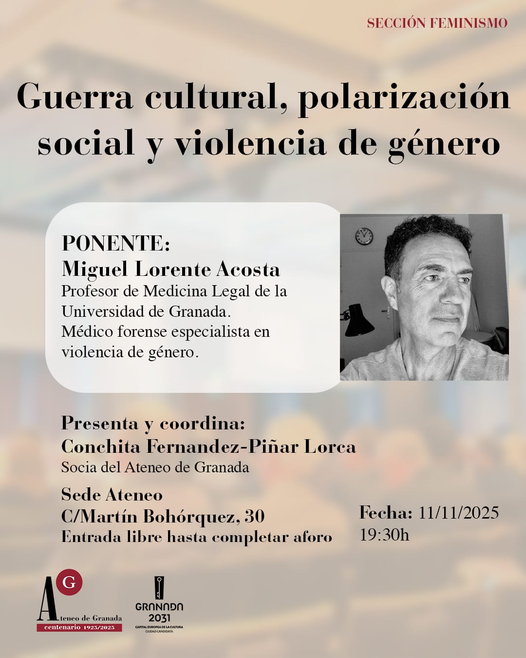 En un contexto cada vez más polarizado, el Ateneo de Granada invita a la reflexión sobre los discursos actuales y su impacto en la violencia de género. Una cita imprescindible con uno de los mayores expertos en la materia:
